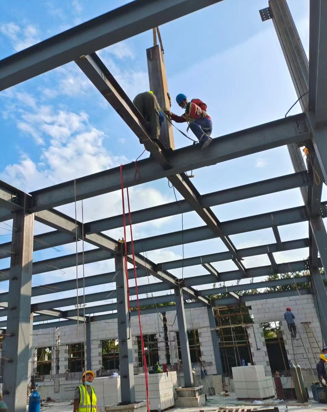 为助力温州疫情期间医院建设施工顺利进行,结合当前温州市疫情防控的形势下,作为关键时期的关键之举,医院建设时间紧、任务重、责任重大。公司对该工程全面增派施工人手,严格按照时间节点细化工程量、作业面,倒排工期、挂图作战,加快施工进度。加强部门协调力度,坚持问题导向,全面统筹协调解决好工程施工过程中遇到的所有问题。连日来,经过我公司全体人员不懈努力全力全速,发扬连续作战精神,紧密协同的配合下,历经10天,方舱医院发热门诊工程主体钢构已全部完工。
